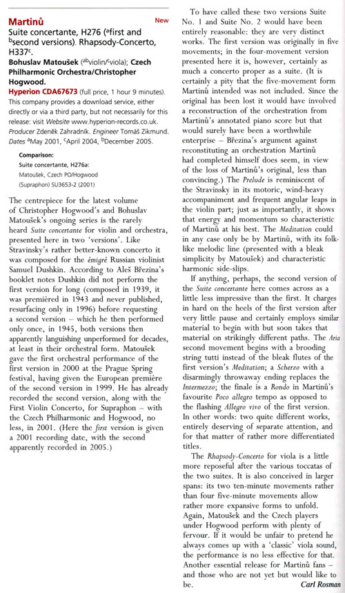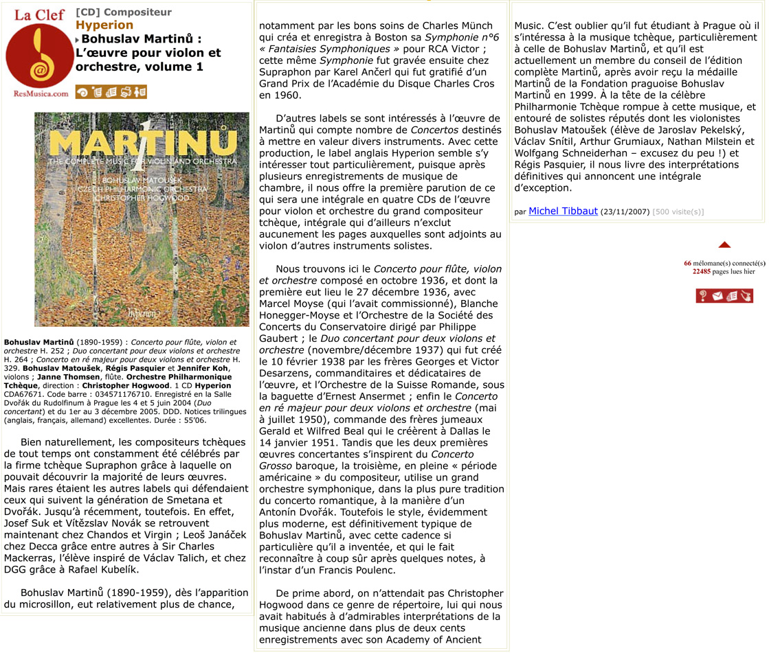 Janne Thomsen - flétna, Régis Pasquier - housle, Jennifer Koh - housle, Česká filharmonie a Christopher Hogwood, Hyperion 2007